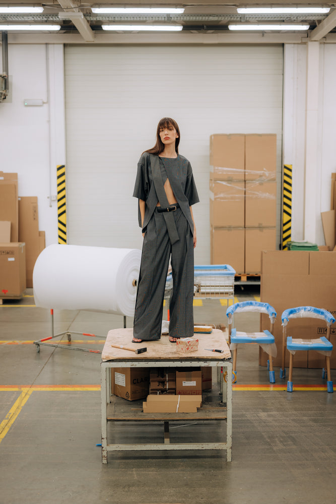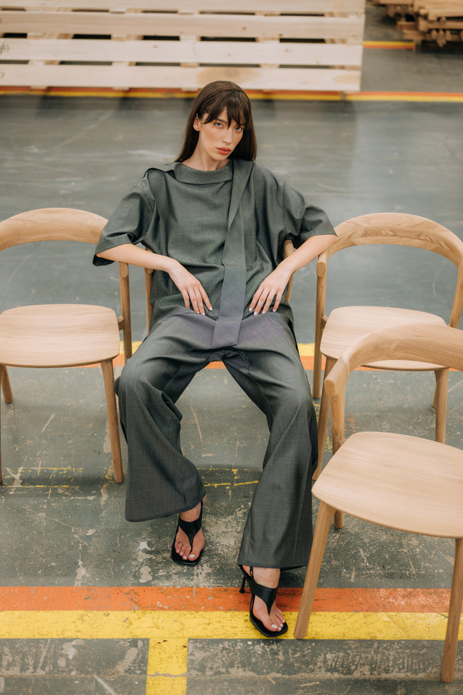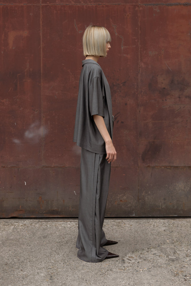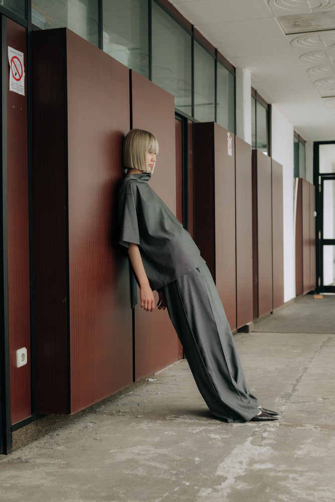Grey pants and t-shirt set made in light virgin wool fabric.